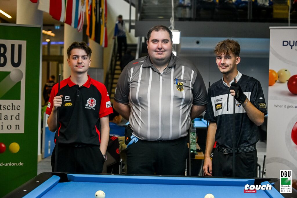Im 10-Ball wurden im Laufe des Tages darüber hinaus die Viertelfinalteilnehmer*innen ermittelt. Bei der männlichen U14 ist Tom-Luca Harms noch im Rennen um die Medaillen dabei. Gleiches gilt für Julian Haag (PBC Gelnhausen) bei der U16.